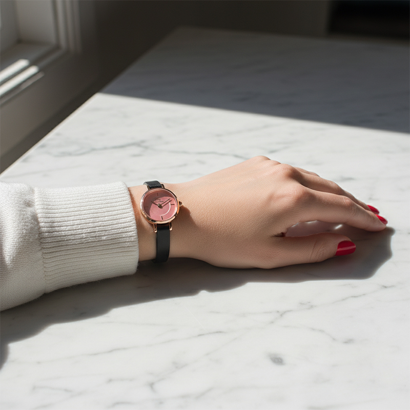 در صورتی که ساعت بند چرمی با صفحه ساده و ظریف انتخاب می کنید می توانید با زیورآلات نقره ای یا طلایی ظریف ست نمایید. این ترکیب برای محیط های کاری و رسمی که می خواهید جدی و در عین حال شیک باشید گزینه مناسبی است.