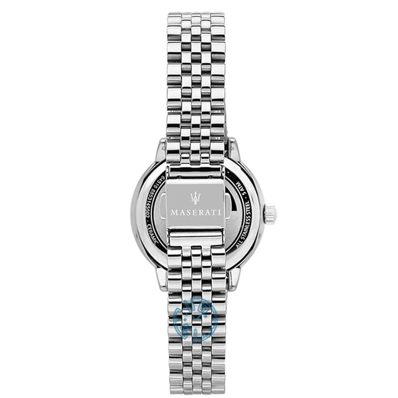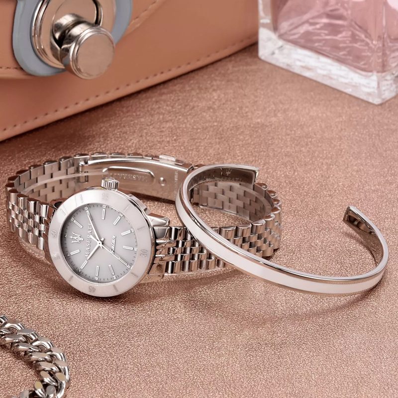 اگر بهدنبال ساعتی زنانه، خاص و کاربردی هستید، ساعت مازراتی R8853145507 ترکیبی زیبا از طراحی کلاسیک و استایل اسپرت را در اختیار شما میگذارد. قاب گرد و نقرهای این مدل با صفحه سفید آن، جلوهای مینیمال و شیک به دست شما میدهد؛ در حالیکه بند استیل 316 ضدحساسیت، دوام و راحتی را همزمان تضمین میکند.