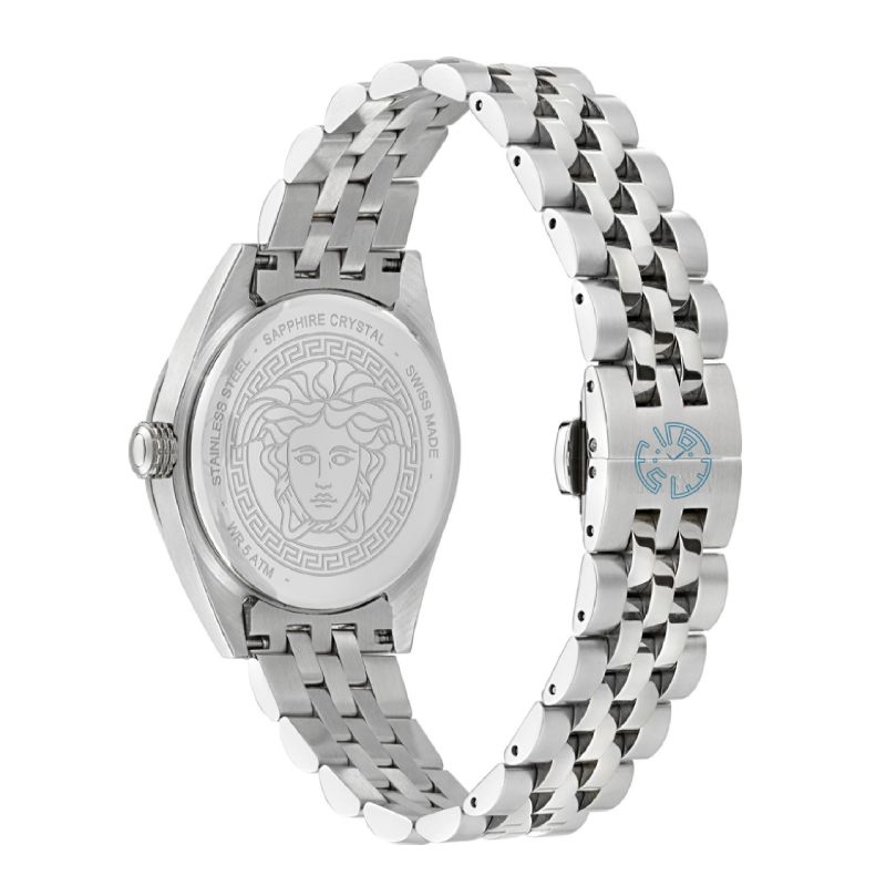 ساعت ورساچه V VVE8I00324 علاوه بر زیبایی ظاهری، مجهز به عقربههای شبنما ساعت است که دید واضح در تاریکی را تضمین میکند. طراحی مینیمال و فاقد تقویم این ساعت، آن را به یک گزینه شیک و کاربردی تبدیل کرده است. رنگبندی نقرهای و سورمهای این مدل، امکان ستکردن با انواع لباسها و اکسسوریها را فراهم میآورد و به راحتی با هر استایل هماهنگ میشود.