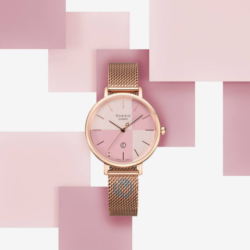 ساعت کاسیو شین SHE-4547PGM-4AUDF یکی از مدلهای زنانه محبوب سری شین است که با ترکیب رنگ رزگلد و صفحه صورتی ظاهری جذاب و متفاوت دارد. قاب گرد با قطر ۳۴ میلیمتر و نگین سواروسکی ساعت جلوهای خاص به این ساعت زنانه بخشیده است. این طراحی، مناسب استفاده روزمره و رسمی است و برای خانمهایی که دنبال سبک کلاسیک و اسپرت هستند، گزینهای ایدهآل به شمار میرود.