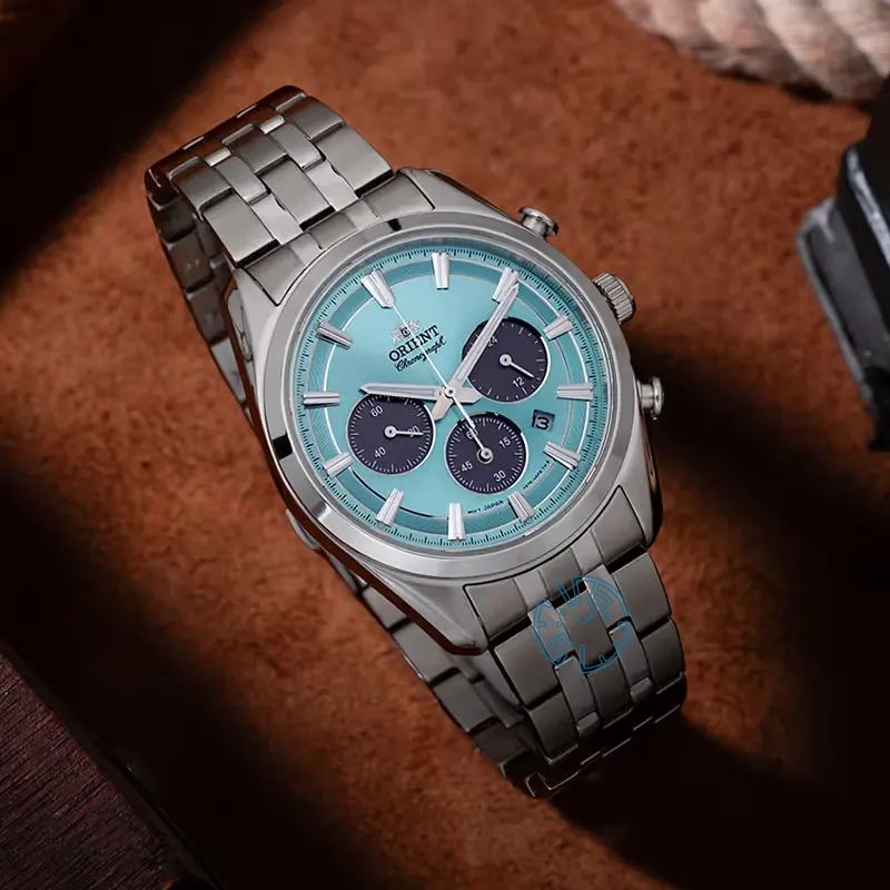 قطر ۴۰ میلیمتری قاب، از استیل 316 ضد حساسیت ساخته شده و جلوهای مدرن و مقاوم دارد. صفحهی آبی تیفانی با عناصر مشکی و نقرهای، فضایی متفاوت و خاص ایجاد کرده که هم در موقعیتهای رسمی و هم در استایلهای روزمره کاربرد دارد. بند فلزی خوشساخت، قفل ضامندار و شیشه یاقوت ضدخش، تجربهای لوکس و بادوام برای استفاده روزانه فراهم میکنند.