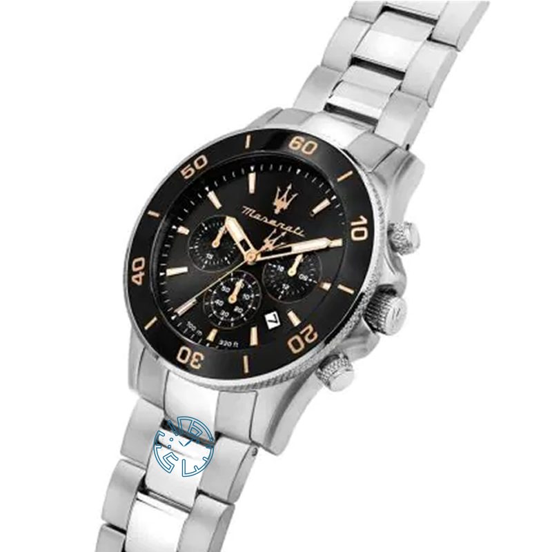 یکی از قابلیتهای مهم این ساعت مازراتی مردانه، کرنوگراف حرفهای آن است که امکان اندازهگیری دقیق زمان را فراهم میکند. همچنین موتور کوارتز ساعت با دقت بالا، عملکرد بدون نقص ساعت را تضمین مینماید. این مدل دارای نمایشگر تقویم و قابلیت شبنما نیز هست.