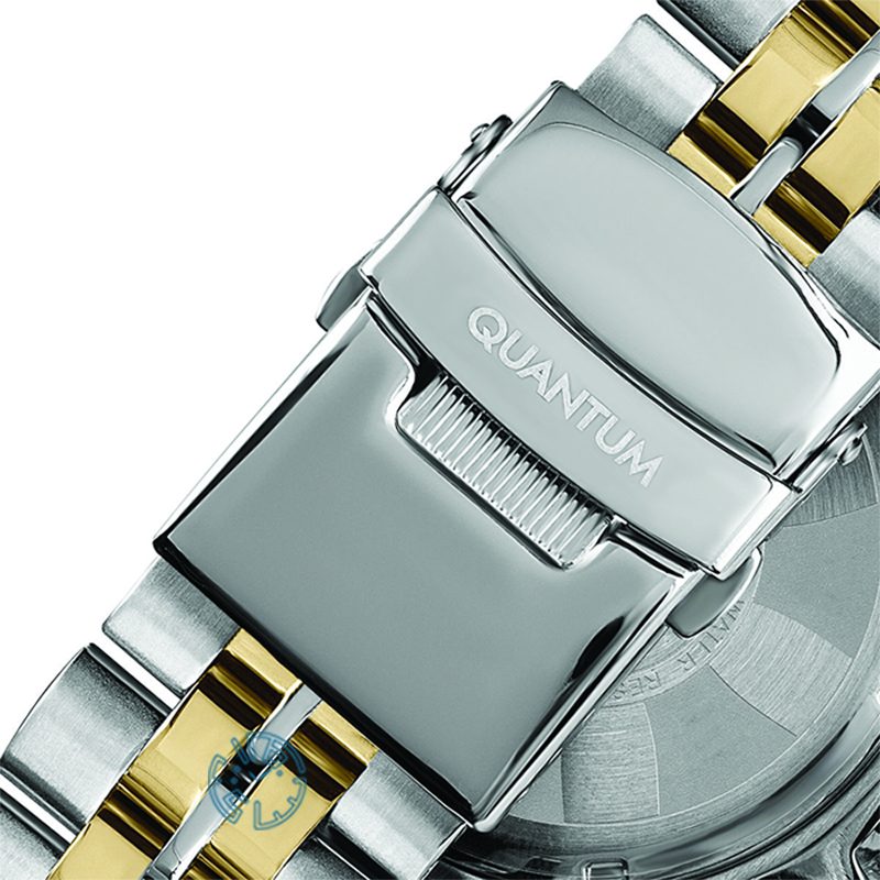 کوانتوم در این مدل، با انتخاب رنگهای متضاد و لوکس، جسارت طراحانه را بهنمایش گذاشته است. رنگ سبز صفحه، هویت ساعت را برجسته میکند و در کنار قاب طلایینقرهای، ظاهری رسمی، اسپرت و شیک به آن میدهد. اگر بهدنبال ساعتی هستید که در نگاه اول تأثیر بگذارد، این مدل انتخابی هوشمندانه خواهد بود.